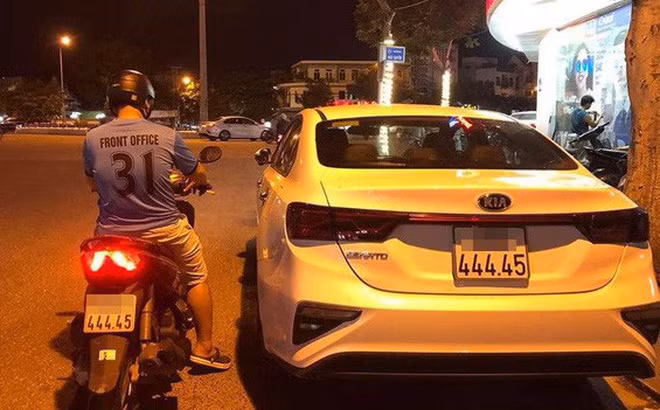 Bức ảnh chụp hiện tượng hiếm có này mới đây thu hút sự chú ý của dân mạng. Theo đó, một xe máy và một ô tô con đang đỗ cạnh nhau, biển xe của chúng giống hai chữ số đầu và toàn bộ dãy số đuôi, chỉ khác phần chữ.