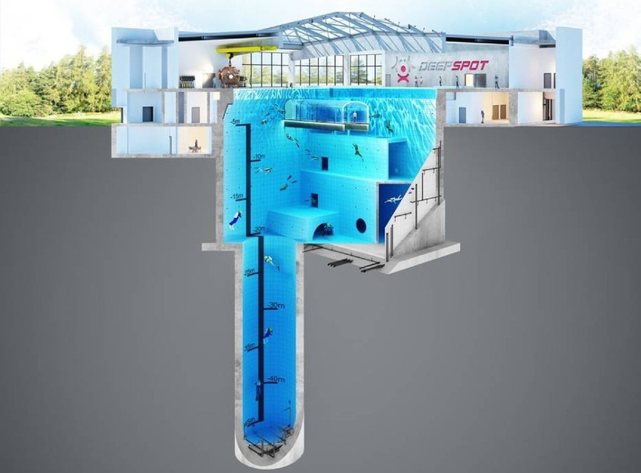 Một bể bơi sâu nhất thế giới sẽ được xây dựng tại Mszczonow (Ba Lan). Bể bơi có độ sâu 45 mét. Việc xây dựng nó “ngốn” hết 1.100 tấn thép.