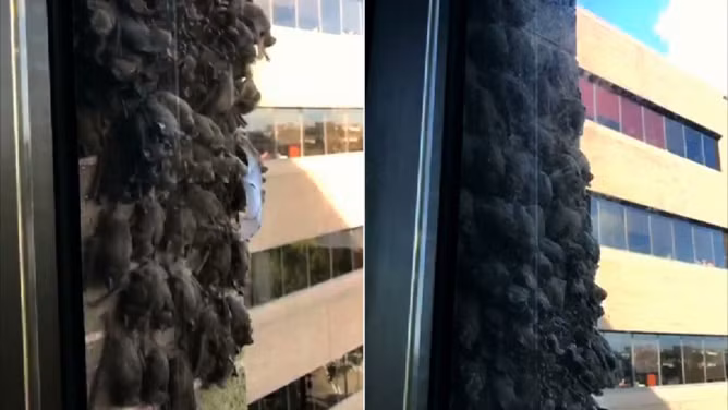 Một đàn dơi khổng lồ bám vào tường một cao ốc văn phòng ở Houston (Texas, Mỹ) đã làm cư dân mạng xôn xao nhiều ngày qua. Ông Dave Royas - một nhân viên văn phòng đã quay video về đàn dơi và đưa lên mạng. Ông cho biết cách đây khoảng 2 năm cũng đã chứng kiến một hiện tượng tương tự. Theo ông, vào mùa này dơi thường di cư, nên không hiểu tại sao chúng lại “tụ họp” trên tường cao ốc này. Điều gây ngạc nhiên hơn nữa là dơi thường chọn những nơi như gầm cầu, dưới mái những cửa hàng…là những nơi yên tĩnh để “dừng chân”, chứ không phải tụ thành đàn lớn trên tường cao ốc.