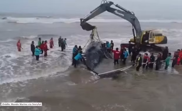 Một con cá voi nặng 7 tấn vừa bị mắc cạn ở bờ biển Argentina. Rất nhiều người đã tham gia giải cứu con cá voi này, trong đó có lực lượng cảnh sát biển và các nhân viên Viện Hải dương học. Sau 28 giờ, chiến dịch giải cứu cá voi đã thành công tốt đẹp. Để di chuyển cá voi ra chỗ nước sâu, người ta đã phải huy động cần cẩu, máy xúc và tàu kéo nhỏ.