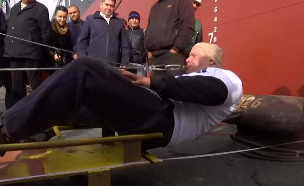 Anh Oleg Skavitch, người Ukraine, vừa lập kỷ lục quốc gia về kéo tàu thủy bằng… răng. Cụ thể, anh đã dùng răng giữ một sợi dây cáp để kéo một chiếc tàu thủy nặng 614 tấn, lướt trên mặt nước hơn 16 mét. Anh làm việc này nhằm kêu gọi mọi người không hành hạ súc vật. “Tôi kêu gọi tất cả mọi người không hành hạ súc vật. Cách đây chưa lâu, tôi đã giải cứu một chú chó từ khu giữ chó hoang và tôi rất vui vì điều đó” - anh Skavitch cho biết.