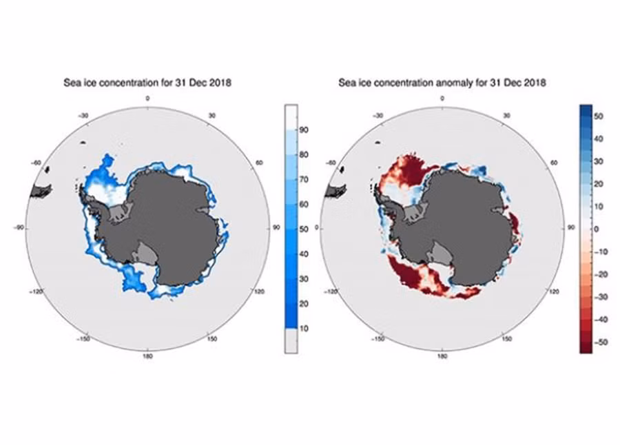 Theo Trung tâm dữ liệu băng tuyết quốc gia Hoa Kỳ (NSIDC), diện tích băng biển Nam cực vào ngày 1/1/2019 đạt 5,47 triệu km2. Đây là giá trị thấp nhất trong lịch sử quan sát vệ tinh.