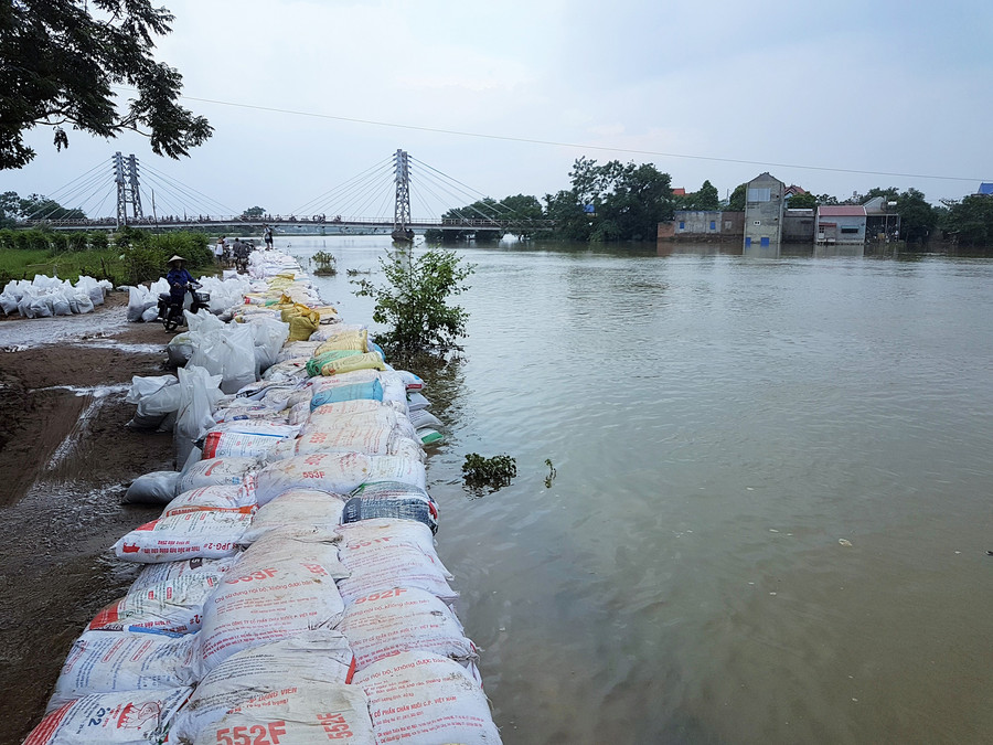| Nhiều đoạn đê xung yếu đã được người dân và các lực lượng chức năng kè chắn  |