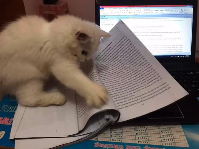 Không những chẳng ai mắng trách gì cậu bé mà còn nhanh chóng đã tạo ra trào lưu "khoe" lý do không làm bài tập về nhà cùng 1 thủ phạm chính là những "boss" mèo. Không hiểu tại sao, chúng luôn hứng thú với góc học tập và sách vở của các "sen" đến thế.