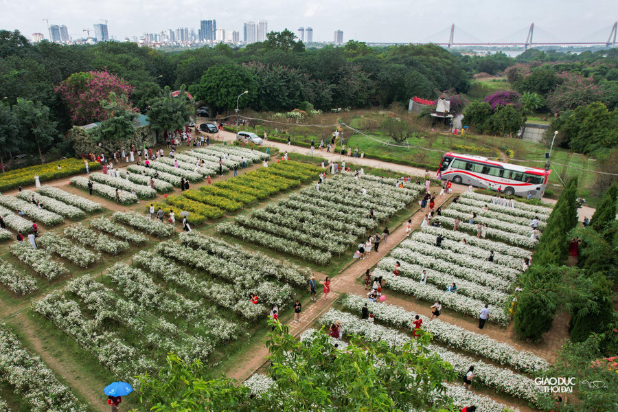 | Hàng nghìn người đổ về vườn hoa ở Bãi đá sông Hồng (quận Tây Hồ, Hà Nội) để tham quan, chụp ảnh với vườn hoa cúc họa mi. |