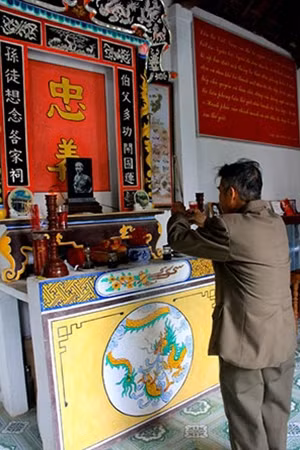 Trong khuôn viên, phía bên tay phải, cụ Thông làm tiếp bàn thờ Cụ Huỳnh Thúc Kháng, Phan Châu Trinh, Luật sư Lô-dơ-bi (ân nhân của Bác Hồ), Đại tướng Võ Nguyên Giáp và đầu năm 2016 mới xong ban thờ Anh hùng dân tộc Trần Quốc Tuấn.