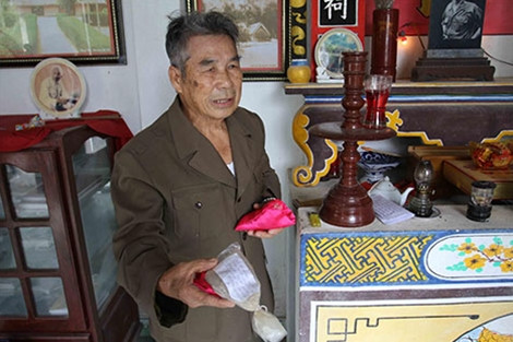 | Cựu chiến binh Võ Như Thông và những kỷ vật về Bác Hồ tại khu nhà tưởng niệm Bác Hồ ở tổ Đồng Trường 2, thị trấn Trà My, huyện Bắc Trà My, tỉnh Quảng Nam. |