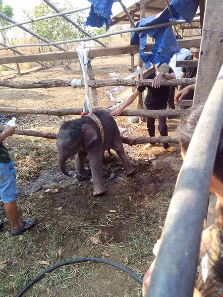 Đến 15 giờ cùng ngày, chú voi con được đưa lên mặt đất. Về phía Trung tâm Bảo tồn Voi thực hiện ngay các biện pháp thăm khám, chăm sóc sức khỏe cho voi con.