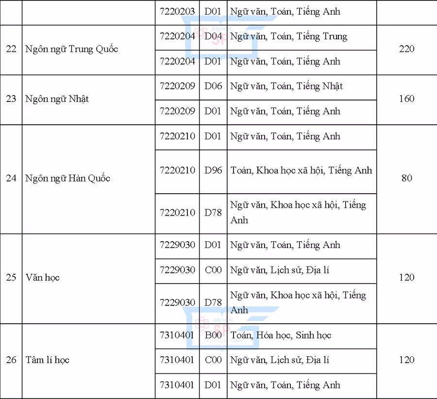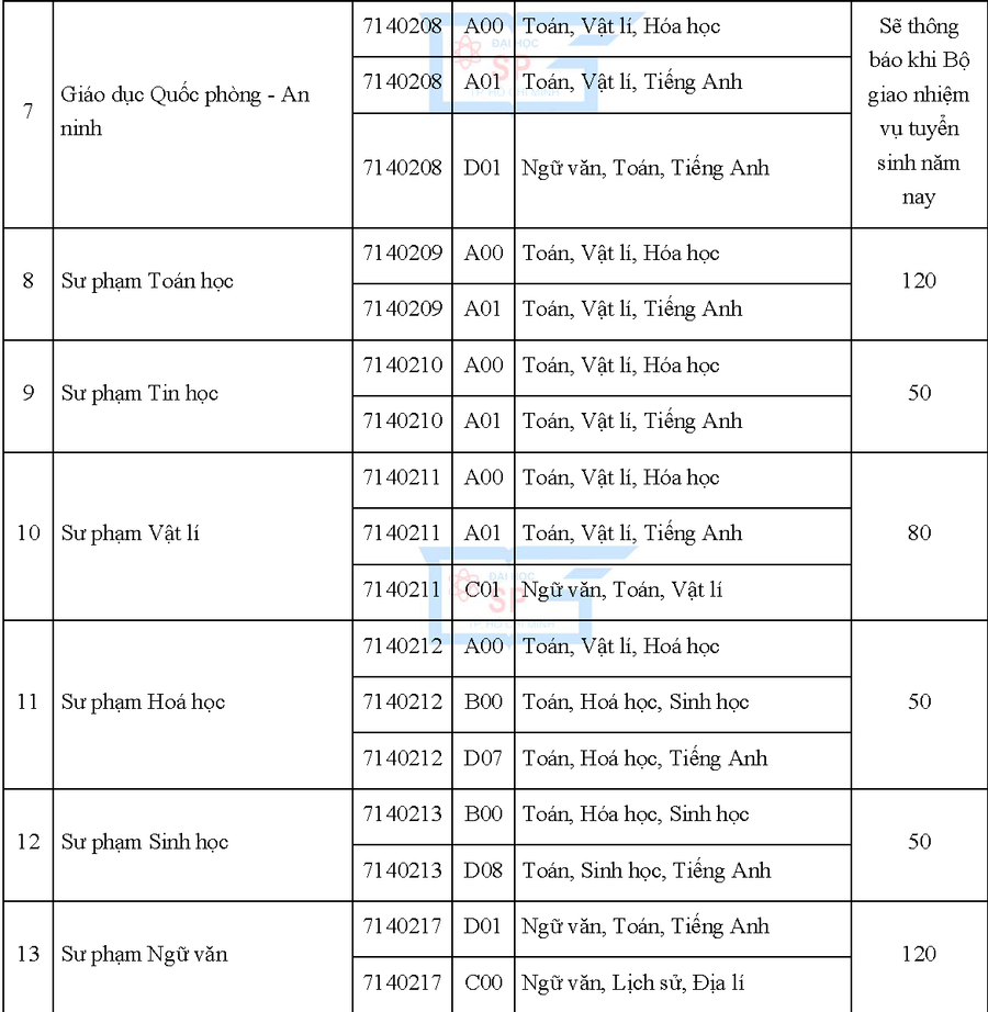 Ngoài ra, Trường ĐH Sư phạm TP Hồ Chí Minh cũng thông báo quy định chênh lệch điểm xét tuyển giữa các tổ hợp. Theo đó, điểm xét tuyển của các tổ hợp môn thuộc một ngành xét tuyển là như nhau.