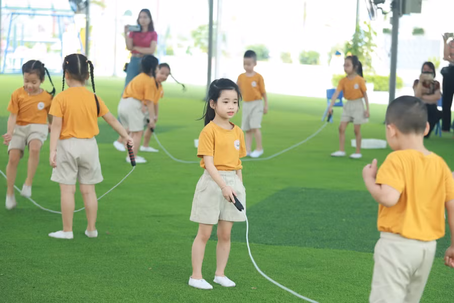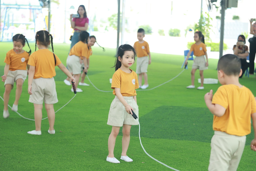 "Trong môi trường mầm non, việc giáo dục thể chất là điều rất quan trọng, nó không chỉ có ý nghĩa trong việc rèn luyện sức khỏe, làm trẻ năng động hơn mà còn giúp trẻ bồi dưỡng nhân tố con người. Do vậy, hiện nay nhà trường đang tích hợp nhiều các hoạt động thể chất vào việc học cho trẻ; giúp cho trẻ vừa có sức khỏe lại củng cố kiến thức và nhớ lâu hơn trong việc học tập", cô Vân nói.