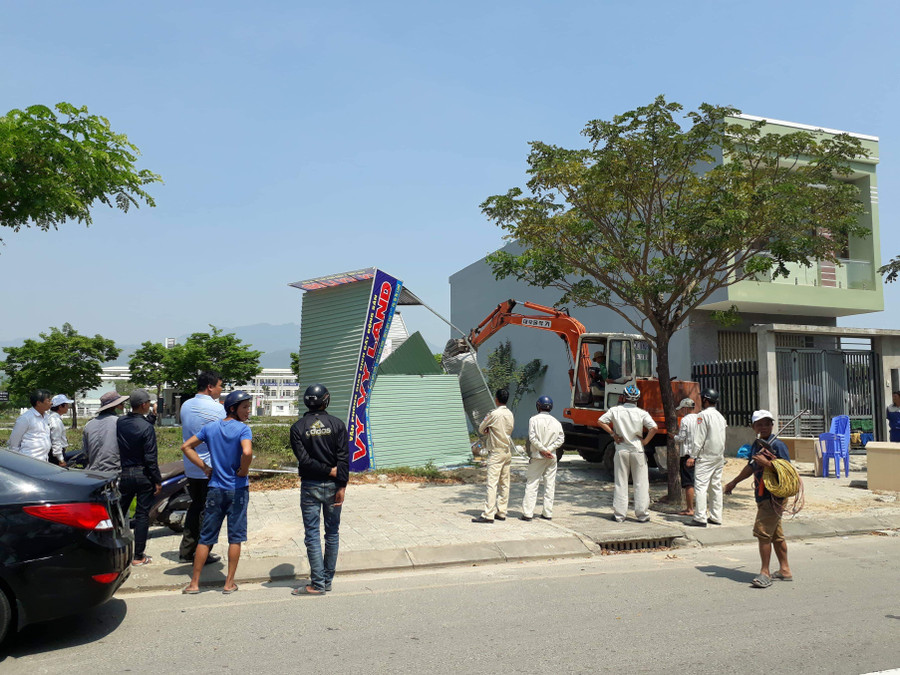 Ông Nguyễn Nhường – Phó Chủ tịch UBND quận Liên Chiểu cho biết, trong buổi sáng của ngày đầu ra quân, đã có khoảng 15 kiot xây dựng trái phép được tháo dở. “Cũng có một số chủ kiot cho rằng họ xây dựng kiot trên đất thuộc quyền sở hữu của họ, thế nhưng, dù không lấn chiếm vỉa hè thì việc xây dựng trên đất đứng chủ sở hữu thì cũng phải có giấy phép xây dựng”.