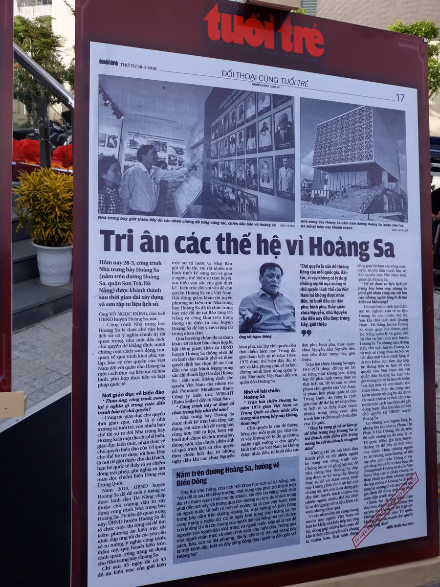 Với Chủ đề Giới thiệu những bài báo viết về Hoàng Sa của các cơ quan báo chí tại Đà Nẵng, các bài báo tại triển lãm thể hiện quá trình xác lập, thực thi và đấu tranh bảo vệ chủ quyền trên hai quần đảo Hoàng Sa và Trường Sa như: sự kiện Trung Quốc khiêu khích và dùng vũ lực chiếm đóng trái phép quần đảo Hoàng Sa của Việt Nam năm 1974; lực lượng cảnh sát biển Việt Nam đang thực thi nhiệm vụ bảo vệ chủ quyền trước việc Trung Quốc ngang nhiên hạ đặt trái phép giàn khoan Hải Dương 981 trong vùng đặc quyền kinh tế và thềm lục địa của Việt Nam; nhân dân cả nước tích cực đấu tranh khẳng định chủ quyền biển đảo và góp phần vạch trần hành vi vi phạm luật pháp quốc tế của Trung Quốc trong vùng đặc quyền kinh tế của Việt Nam.