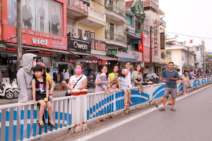 | Nhiều phụ huynh cùng các em nhỏ theo dõi lễ hội Quảng diễn đường phố. |