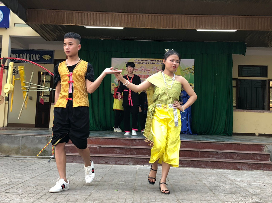 "Em rất thích múa Lăm vông của dân tộc Lào và múa Đại đoàn kết các dân tộc, nó rất đẹp và lôi cuốn", em Đinh Thị Vân Ly (học sinh lớp 12, dân tộc Mường) chia sẻ.