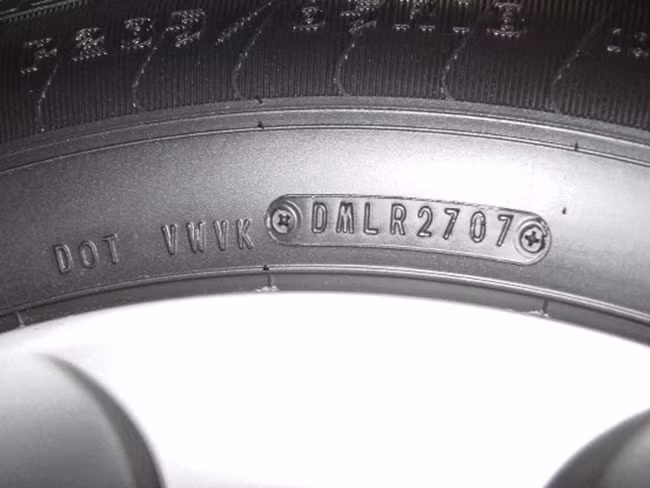 Ở lốp xe này là 4 chữ số 2707 – tương đương sản xuất vào tuần thứ 27 của năm 2007, tức tháng 7/2007.