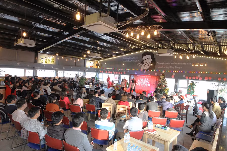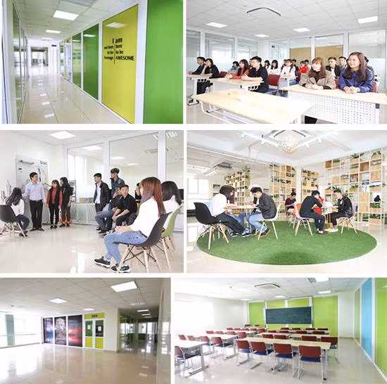 Khu Canteen sử dụng các vật liệu thân thiện với môi trường, view đẹp và không gian bố trí lộng lẫy kèm theo đó là những góc thư giãn cho sinh viên giúp giải tỏa stress, học hành cũng như tụ tập cùng bạn bè và tổ chức một số sự kiện đặc biệt của trường.