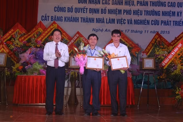 Tại buổi lễ, trường Đại học Vinh cũng vinh dự đón nhận nhiều danh hiệu và phần thưởng cao quý: Chào mừng 3 tân Phó Giáo sư; 1 cá nhân nhận Huân chương Lao động hạng Ba do Chủ tịch nước trao tặng; 4 cá nhân được nhận bằng khen của Thủ tướng; 9 cá nhân nhận kỷ niệm chương Vì sự nghiệp giáo dục; 11 tập thể được nhận danh hiệu Tập thể lao động xuất sắc và 2 chiến sĩ thi đua cấp Bộ do Bộ GD&ĐT trao tặng. Tỉnh ủy Nghệ An cũng đã trao tặng huy hiệu 30 năm tuổi Đảng cho 2 cán bộ của trường.