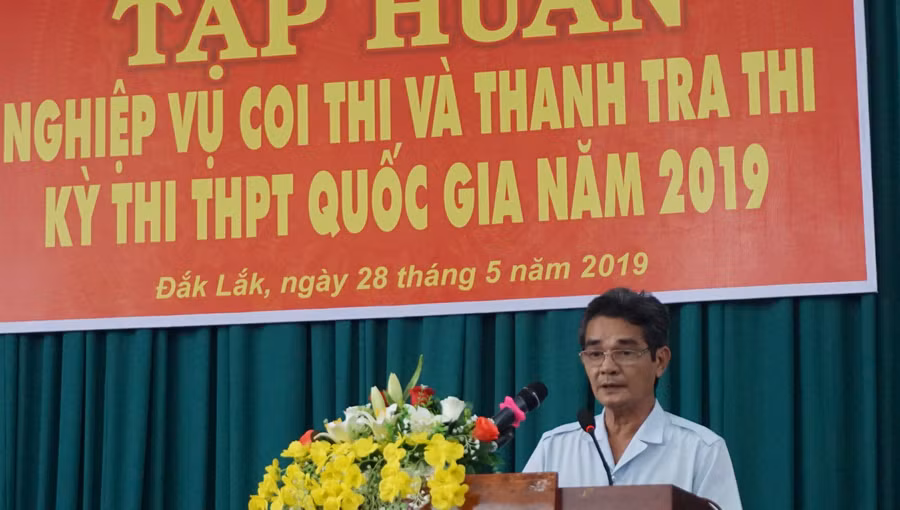 Để đảm bảo Kỳ thi THPT quốc gia năm 2019 tại Hội đồng thi Đắk Lắk diễn ra an toàn, nghiêm túc, đúng quy chế, ông Dương Đình Long, Chánh Thanh tra Sở GDĐT đã triển khai kế hoạch thanh tra tại kỳ thi; hướng dẫn nghiệp vụ thanh tra thi cho các đại biểu dự Hội nghị.