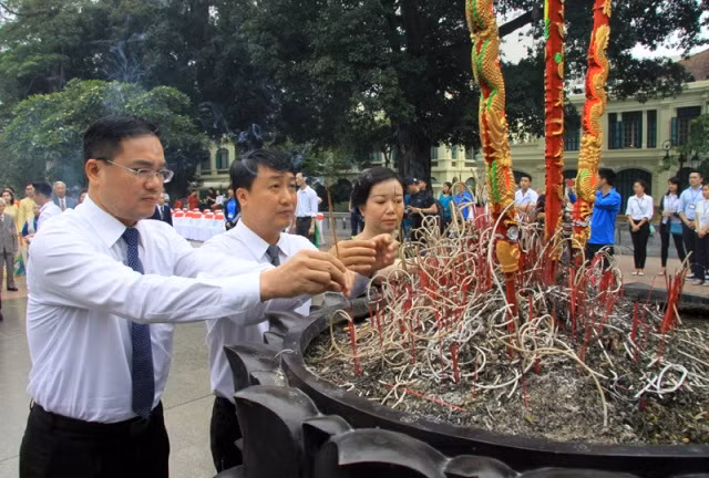 Tham dự lễ dâng hương cùng 40 cặp đôi có các đồng chí: Nguyễn Khánh Bình – UVBCH Trung ương Đoàn, Phó Bí thư Thành đoàn, Chủ tịch Hội đồng Đội thành phố Hà Nội; Nguyễn Ngọc Việt – UVBCH Trung ương Đoàn, Phó Bí thư Thành đoàn, Chủ tịch Hội liên Hiệp Thanh niên Việt Nam thành phố Hà Nội.