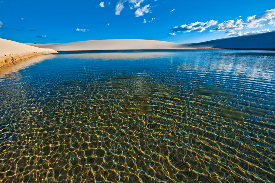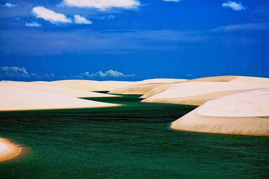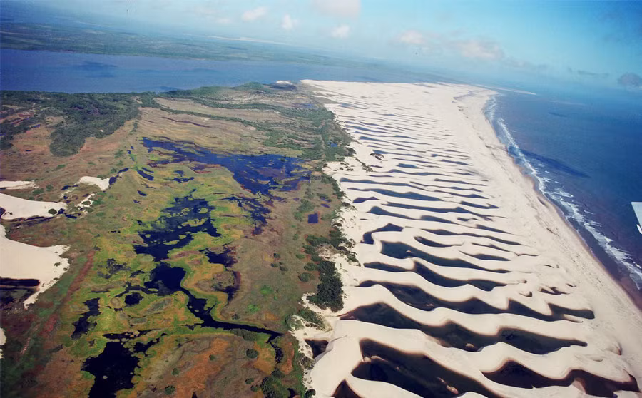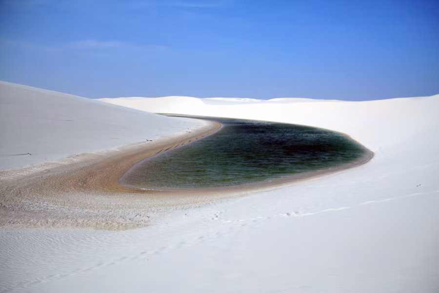 Trên thực tế, Lencois Maranhensses không phải sa mạc. Do nằm ngay bên ngoài lưu vực Amazon nên khu vực này thường xuyên có mưa ngay từ đầu năm. Những trận mưa lớn đã tạo nên một hiện tượng kỳ lạ: nước ngọt tụ lại trong các thung lũng nằm giữa những cồn cát trắng, hình thành nên những đầm nước màu xanh lá cây và xanh da trời đẹp mắt, tạo điểm nhấn vô cùng lý thú cho vườn quốc gia Lencois Maranhensses vào giữa tháng 7 và tháng 9.