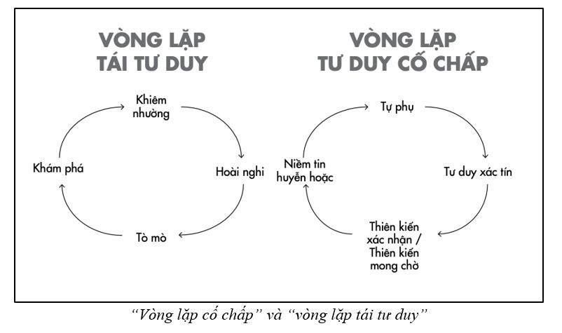 Cứ thế, cuộc sống của chúng ta rất dễ mắc kẹt vào một vòng lặp tư duy cố chấp: Ta tin tưởng quá mức một điều, rồi chỉ nhìn thấy những gì củng cố niềm tin đó và ta tiếp tục tự phụ, khư khư ôm lấy những quan điểm, niềm tin cũ kỹ, huyễn hoặc.