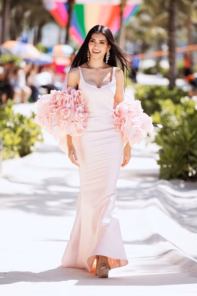 | Các hoa hậu xuất hiện trên đường băng với hình ảnh chỉn chu, thể hiện khả năng catwalk. |