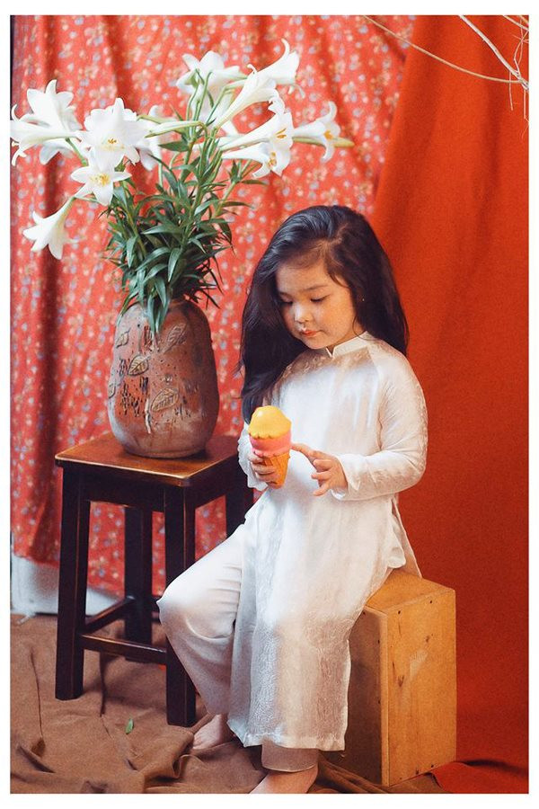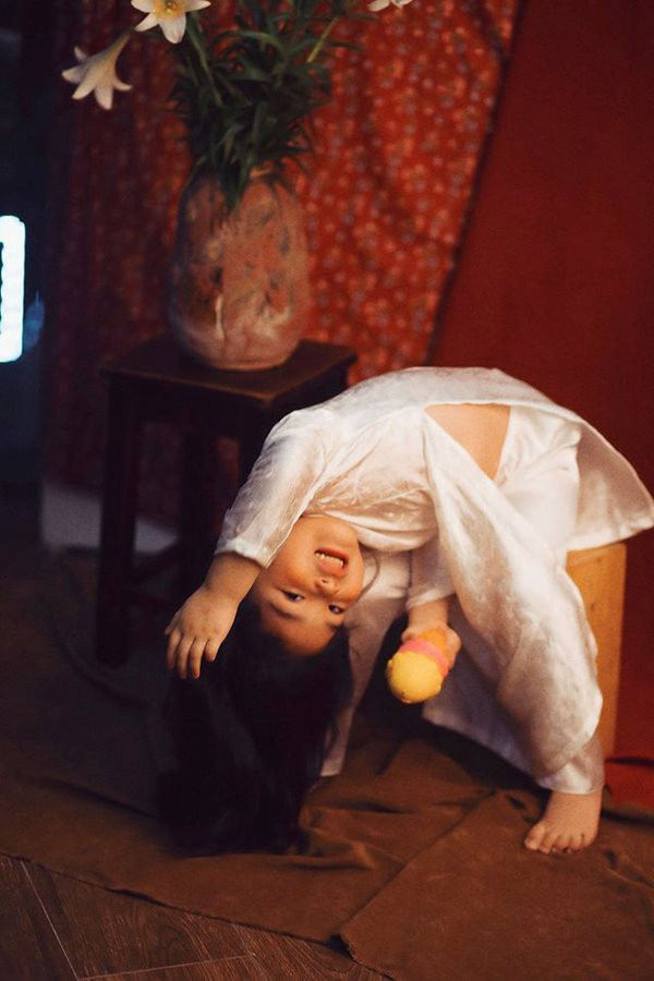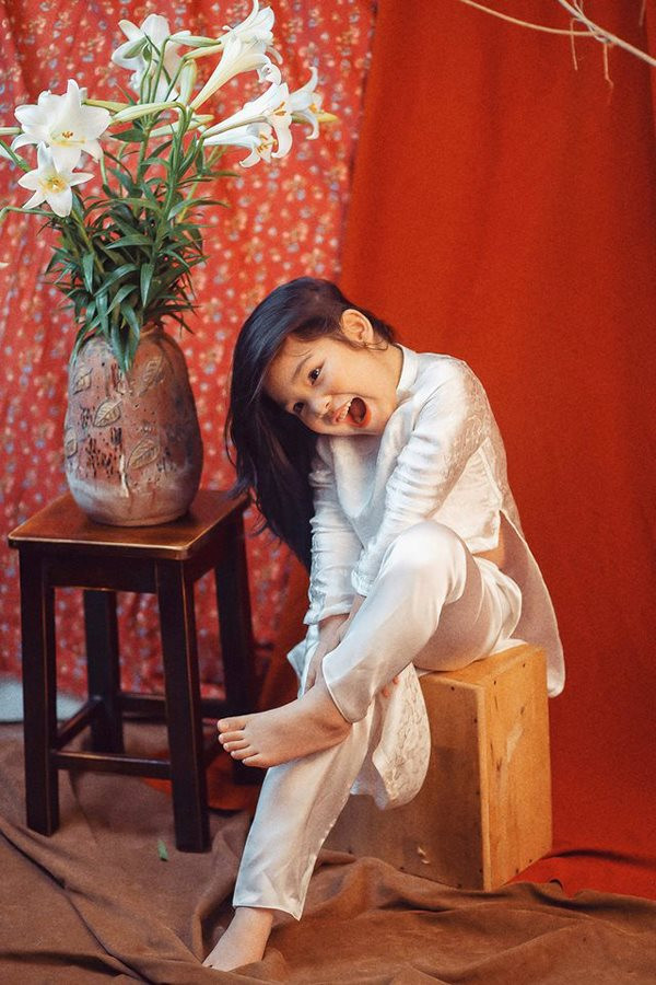 | Bộ ảnh "Thiếu nữ bên hoa huệ" với loạt biểu cảm khó đỡ của em bé Hà Nội gây "bão" mạng. |