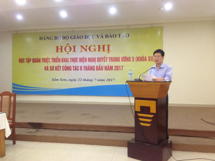 Phát biểu khai mạc hội nghị, Thứ trưởng Phạm Mạnh Hùng, Bí thư Đảng Bộ, Bộ Giáo dục và Đào tạo nhấn mạnh: “Từ ngày 5 đến 10/5/2017, tại Thủ đô Hà Nội, Hội nghị Trung ương 5 của Đảng tiến hành làm việc và thành công tốt đẹp. Hội nghị đánh giá, 6 tháng đầu năm 2017, tuy còn nhiều khó khăn, hạn chế song được lãnh đạo sâu sát của Đảng ủy khối các cơ quan TW, sự phối kết hợp chặt chẽ giữa Ban cán sự Đảng, Lãnh đạo Bộ, lãnh đạo các cơ quan, đơn vị; sự phối kết hợp các tổ chức, cấp ủy đảng và sự cố gắng của toàn thể đảng viên, Đảng bộ Giáo dục và Đào tạo đã hoàn thành tốt nhiệm vụ 6 tháng đầu năm. Hội nghị hôm nay chúng ta có nhiệm vụ quán triệt, triển khai thực hiện 3 nội dung quan trọng của Hội nghị TW 5 khóa XII về kinh tế. Cụ thể: Nghị quyết số 10-NQ/TW, ngày 03-6-2017 về phát triển kinh tế tư nhân trở thành một động lực quan trọng của nền kinh tế thị trường, định hướng xã hội chủ nghĩa; Nghị quyết số 11- NQ/TW, ngày 03-6-2017 về hoàn thiện thể chế kinh tế thị trường, định hướng xã hội chủ nghĩa và Nghị quyết số 12-NQTW, ngày 03-6-2017 về tiếp tục cơ cấu lại, đổi mới và nâng cao hiệu quả doanh nghiệp nhà nước. Đây là những nội dung quan trọng, thời gian làm việc không nhiều. Tôi đề nghị các đồng chí đề cao tinh thần trách nhiệm, tập trung nghiên cứu, quán triệt đầy đủ, sâu sắc các nội dung của hội nghị. Đề nghị các cấp ủy đảng các cấp, các đồng chí chủ chốt tập trung lãnh đạo, chỉ đạo các đảng viên quán triệt sâu sắc và có hiệu quả các nghị quyết trên góp phần thực hiện thắng lợi Nghị quyết Trung ương và nhiệm vụ năm 2017 của Đảng Bộ, Bộ Giáo dục và Đào tạo”.
