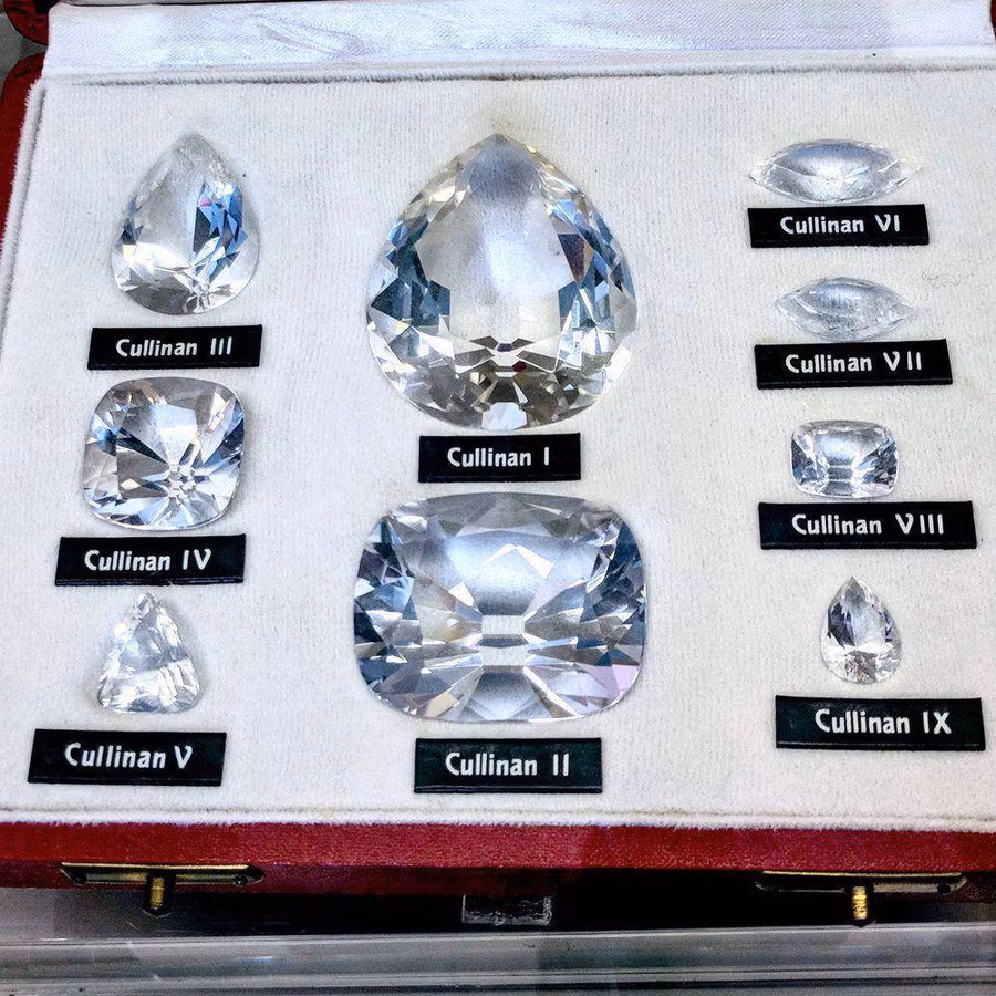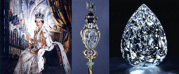Viên kim cương lớn nhất mang tên Cullinan I được chế tác có hình trái lê với 78 mặt, nặng 530,2 carat, nó được đặt ở nơi cao nhất trên cây quyền trượng Hoàng gia.