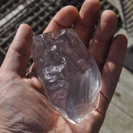 Tuy nhiên, dưới ánh sáng mặt trời, "mảnh thủy tinh" ấy lại phát ra thứ ánh sáng lấp lánh hấp dẫn ánh mắt tò mò của ông. Ông dùng con dao bỏ túi để lấy nó ra khỏi lớp đất đá bao quanh, lau chùi sạch sẽ rồi đem về nhà nghiên cứu kỹ.