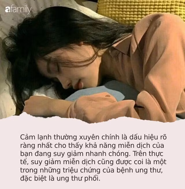 Cảm lạnh thường xuyên chính là dấu hiệu rõ ràng nhất cho thấy khả năng miễn dịch của bạn đang suy giảm nhanh chóng. Trên thực tế, suy giảm miễn dịch cũng được coi là một trong những triệu chứng của bệnh ung thư, đặc biệt là ung thư phổi.