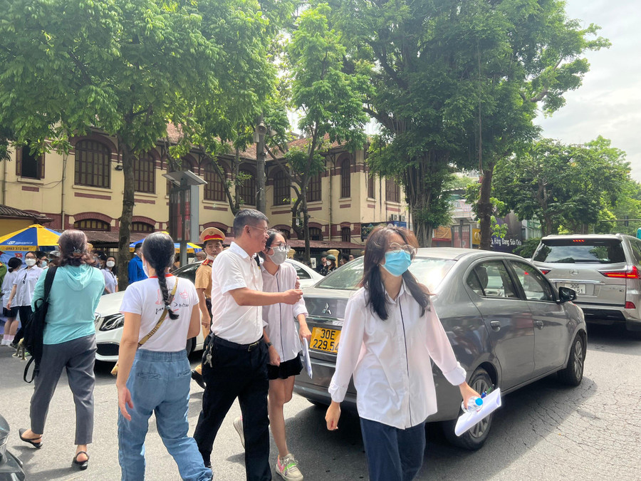 Tại điểm thi của trường THPT Trần Phú (Hoàn Kiếm, Hà Nội), nhiều phụ huynh vui mừng khi thấy con mình ra khỏi phòng thi với nụ cười tự tin, phấn khởi.
