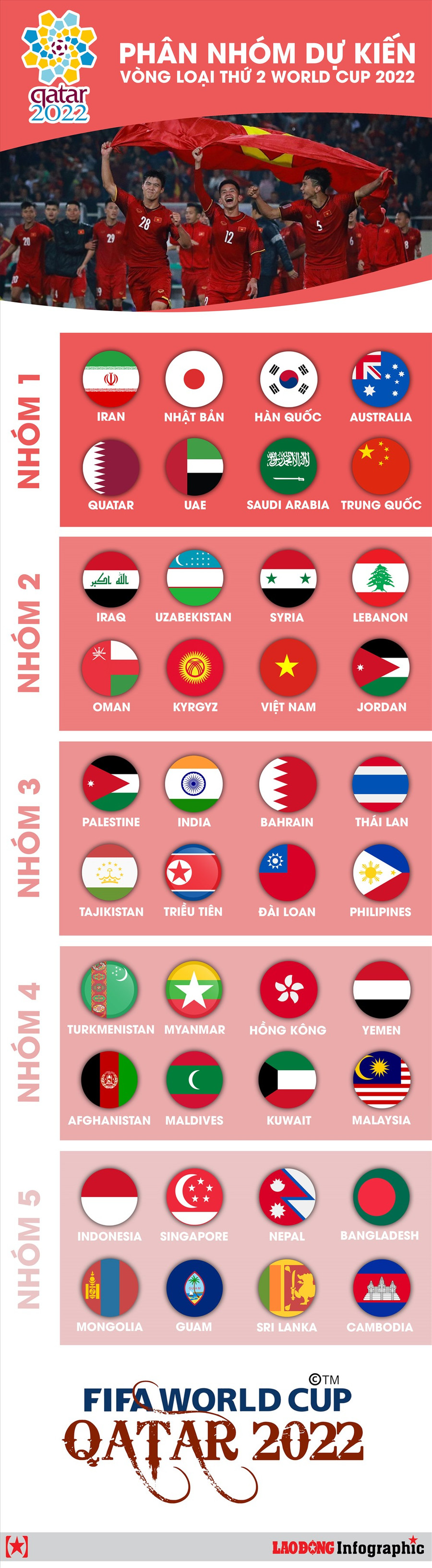 Danh sách 40 đội dự vòng loại World Cup 2022, tuyển Việt Nam ở nhóm số 2