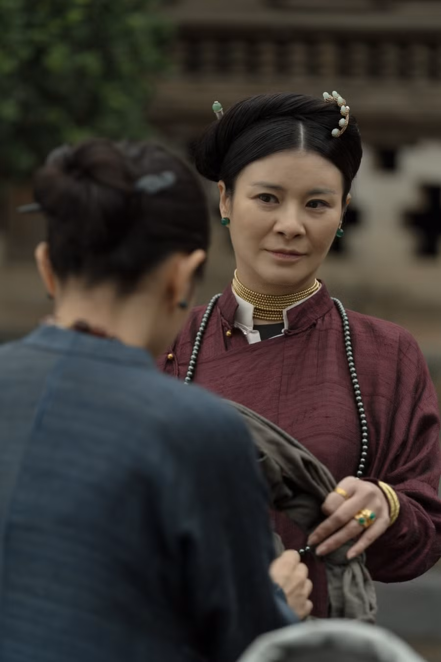 Cụ thể, khi nhìn vào phục sức của người vợ cả (NSƯT Kim Oanh), đạo diễn Victor Vũ chọn tông màu nóng, thường là đỏ hoặc nâu đậm trên nền vải đơn giản, kiệm hoa văn. Điều này thể hiện cá tính nghiêm khắc và có phần nóng nảy của nhân vật khi đây là “nữ chủ” của gia đình, suốt ngày phải bận tâm lo liệu việc trong việc ngoài hơn là dành thời gian làm dáng điệu đà cùng váy áo.