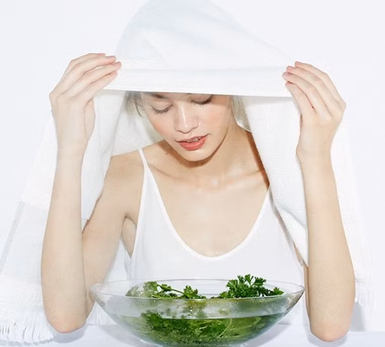 – Dùng khăn trùm kín đầu tránh làm hơi nước thoát ra ngoài, thực hiện xông mặt như vậy đến khi nguội hoàn toàn.