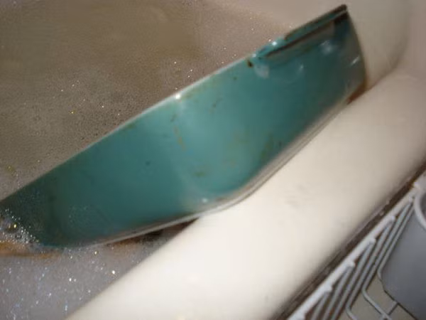 - Đổ nước ấm vào bát thủy tinh rồi cho vài giọt nước rửa chén. Nếu muốn khử mùi thức ăn còn sót lại thì có thể cho thêm vài thìa baking soda vào tô nước.