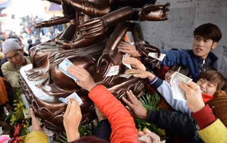 Tiền lẻ xuất hiện từ hòm công đức đến chân, tay, đầu, khắp nơi, thậm chí là ném xuống ao, mọi nơi mọi lúc, càng nhét được chỗ nào thì nhét. Đó thực sự là một tệ nạn.