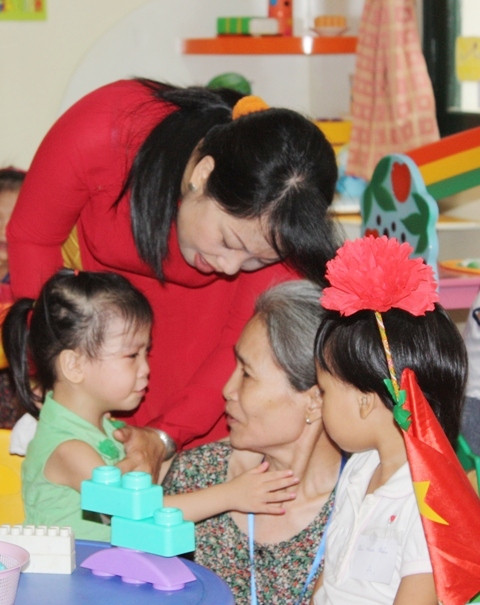 | Nhưng các em nhỏ lần đầu tiên đến trường vẫn khóc đòi mẹ. Ảnh: gdtd.vn |