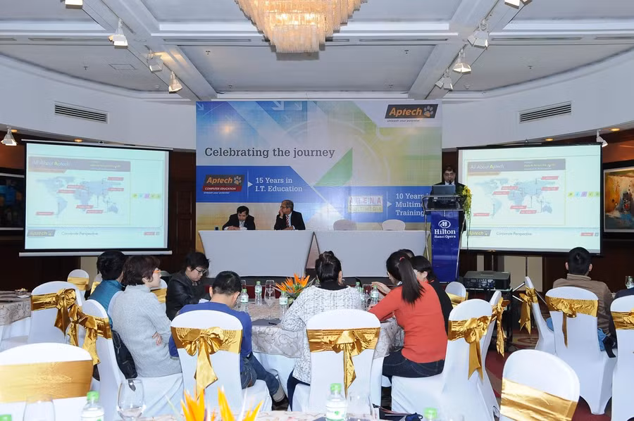 Tại Việt Nam, Aptech đã có mặt trong 15 năm qua với thương hiệu Hệ thống đào tạo lập trình viên Quốc tế Aptech và 10 năm với thương hiệu đào tạo Mỹ thuật Đa phương tiện Arena Multimedia.