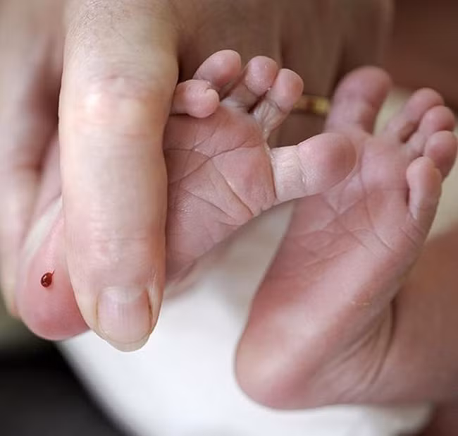 Việc lấy máu gót chân sơ sinh và làm sàng lọc ngay khi trẻ sinh ra là cực kỳ cần thiết (Ảnh minh họa).