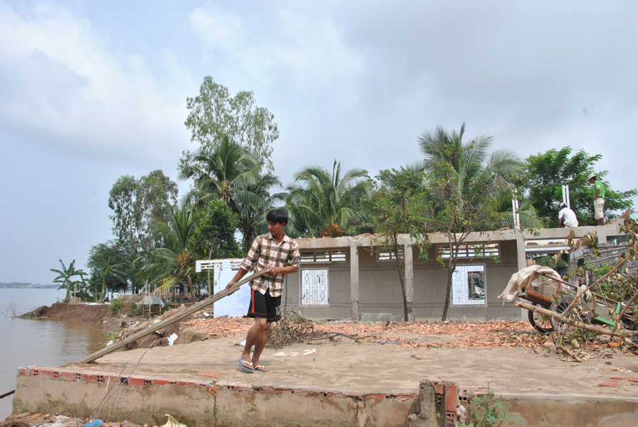 “Điều đáng lo ngại hiện nay là trong khi mực nước sông Mê Kông xuống rất thấp thì ĐBSCL lại gần như không còn bồi tích nữa. Nguyên nhân ở đây phần lớn là do con người với các hoạt động tác động mạnh mẽ vào thiên nhiên. Việc người dân ĐBSCL xây các đê quây để làm nhà ở khiến bùn, cát từ các nhánh sông đổ về không đi ra biển mà “quẩn” trong một vùng cố định. Trong khi nước biển thì dân cao mà bồi tích không có thì đương nhiên ĐBSCL sẽ sụt lún dần”, GS Vũ Trọng Hồng cho biết.