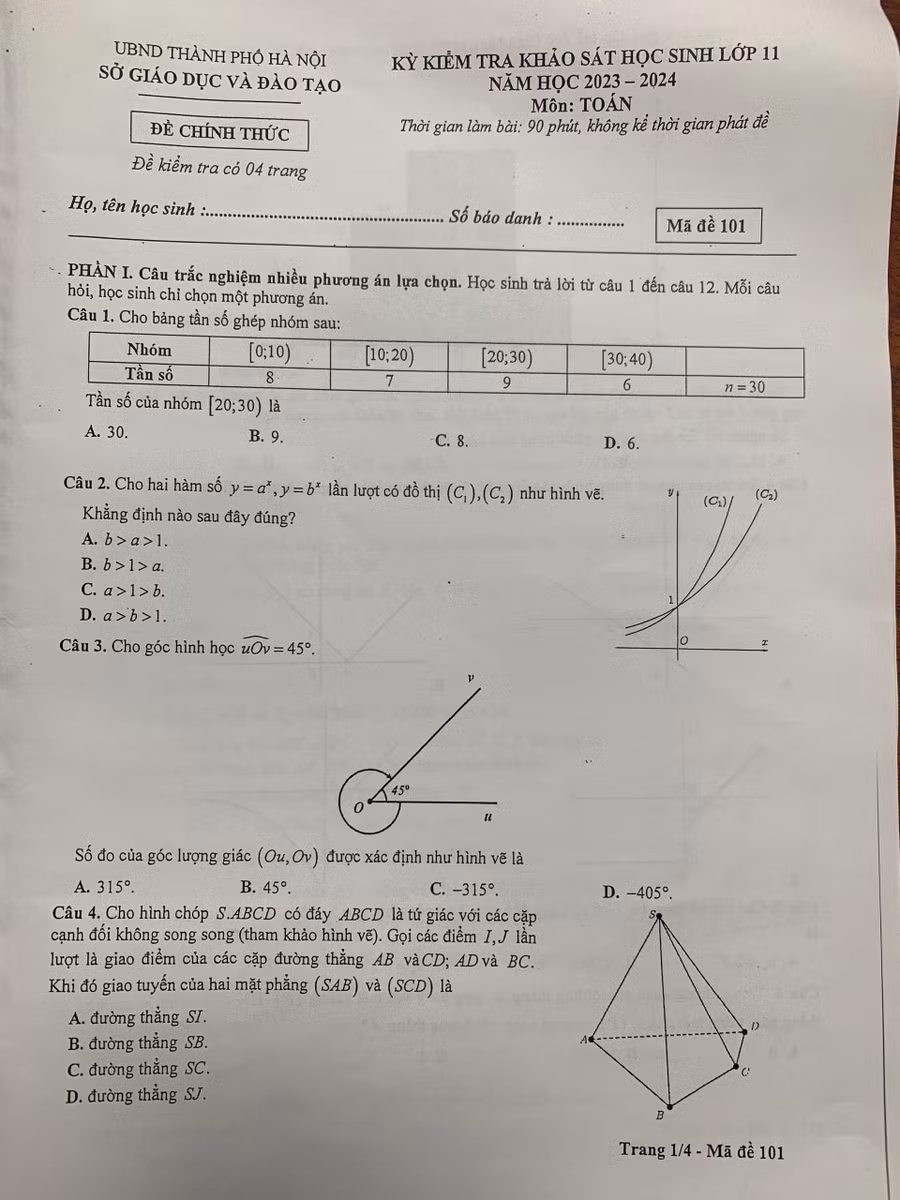 Ngày 12/34, Sở GD&ĐT Hà Nội tổ chức kỳ kiểm tra khảo sát theo các cụm cho toàn bộ học sinh khối 11 với hai môn: Sáng kiểm tra Văn (120 phút), chiều kiểm tra Toán (90 phút).