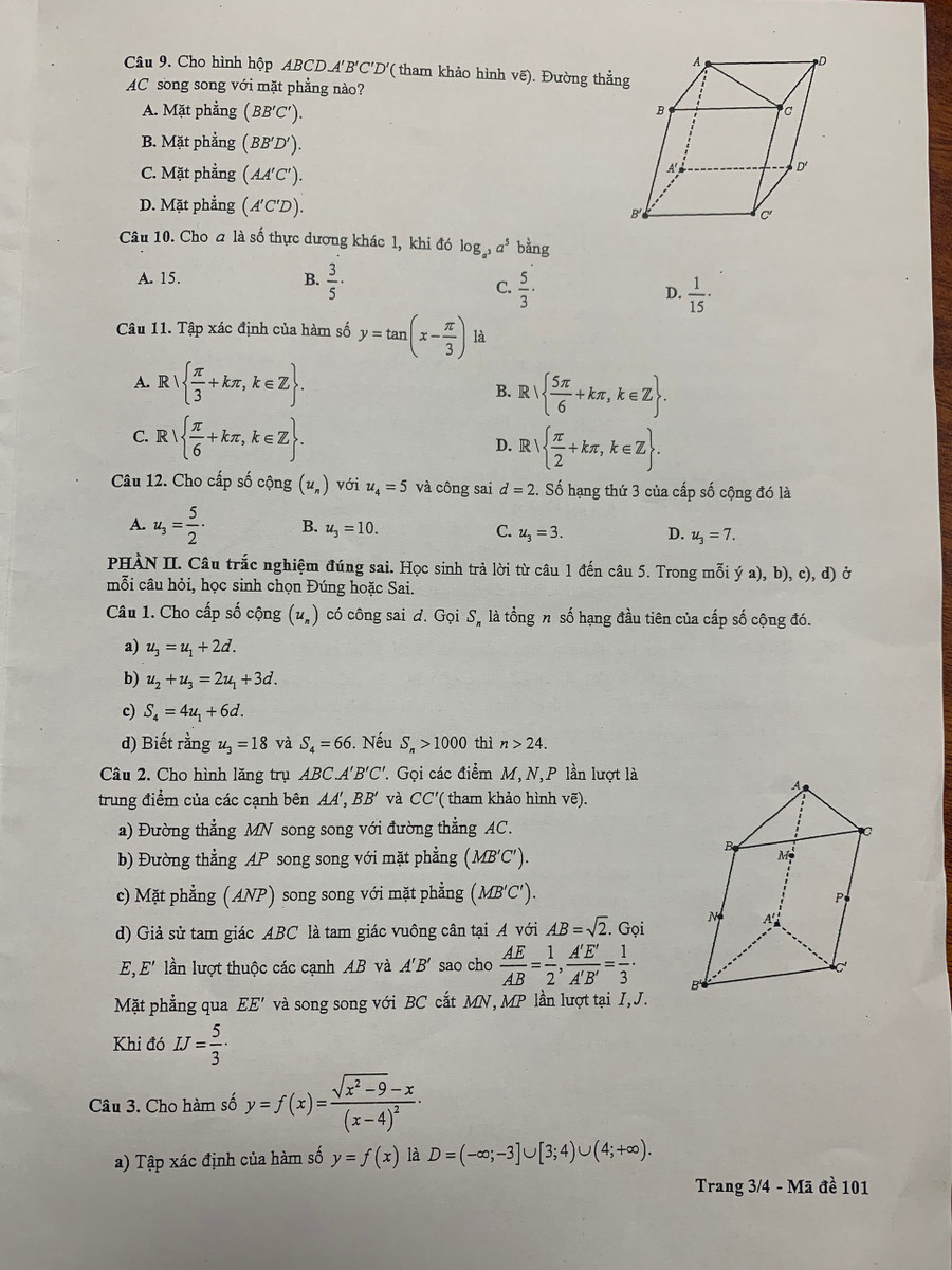 Phần II: 5 bài trắc nghiệm đúng sai, mỗi bài 4 ý (tối đa 5 điểm).