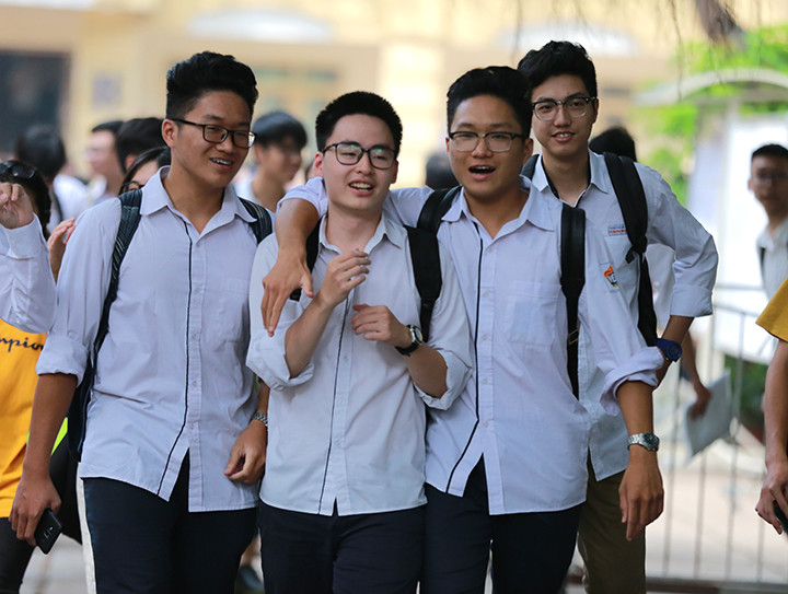 | Sau 120 phút, các sĩ tử tại trường PTTH Việt Đức (Hà Nội) rời phòng thi với gương mặt rạng ngời. |