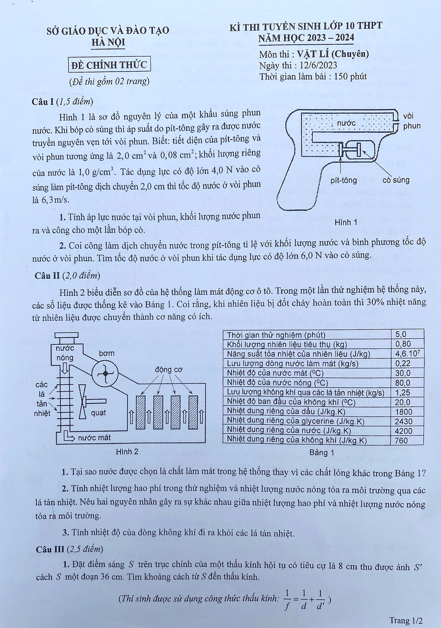 Cụ thể: câu I - 1,5 điểm, câu II - 2,0 điểm, câu III - 2,5 điểm, câu IV - 2,5 điểm, câu V - 1 điểm. Như vậy, tổng điểm đề thi chuyên Vật lý vào lớp 10 tại Hà Nội chỉ có 9,5 điểm.