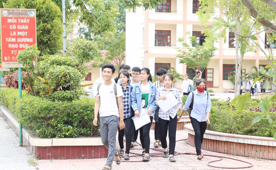 | Thí sinh rời khỏi trường thi sau buổi thi đầu tiên |
