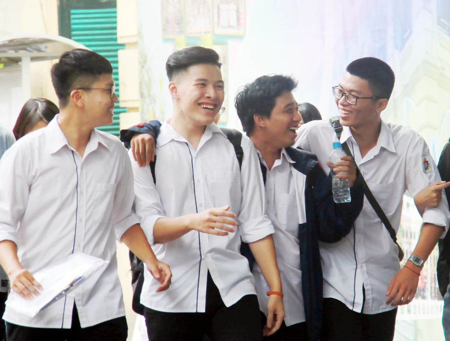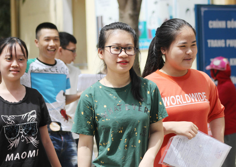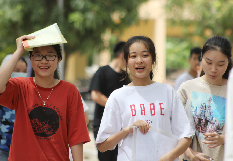 | Thí sinh hồ hởi tan trường thi |