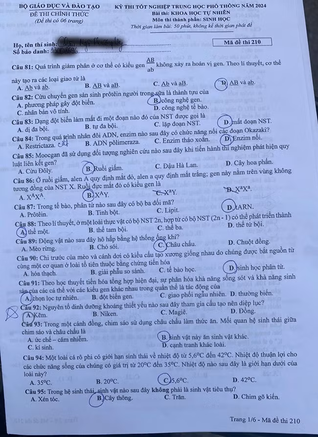 Theo Thạc sĩ Phan Thị Hải Yến, đề thi môn Sinh học Kỳ thi tốt nghiệp THPT năm 2024 bám sát cấu trúc đề của Bộ GD&ĐT đã công bố trước, không nằm trong nội dung đã giảm tải.