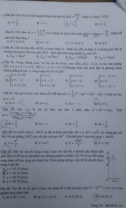 Bên cạnh đó, vẫn có các câu hỏi “hay”, “lạ” có tính ứng dụng thực tiễn là các câu có tính phân loại, dùng để lấy điểm 9, 10 như câu 49 mã đề 101; 50 mã đề 124; câu 48 mã đề 104 và câu 45 mã đề 105 (rơi vào dạng đồ thị); câu 37 mã đề 124; câu 41 mã đề 101 và câu 34 mã đề 104 (rơi vào dạng bài toán chuyển động tính quãng đường), câu 39 mã đề 124 và câu 35 mã đề 101 (bài toán thực tế về tính lương hoặc tính lãi suất).