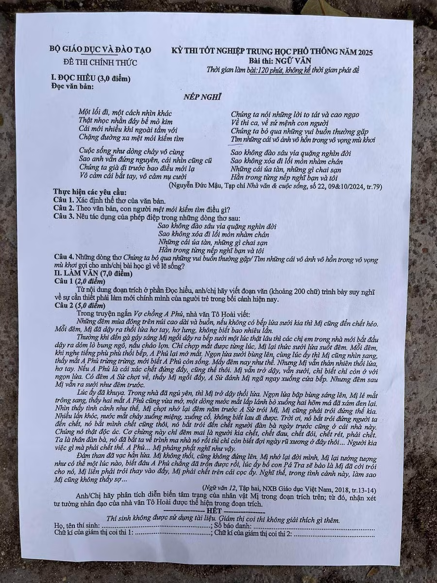 Đề thi môn Ngữ văn Kỳ thi tốt nghiệp THPT năm 2025 theo chương trình GDPT 2018: